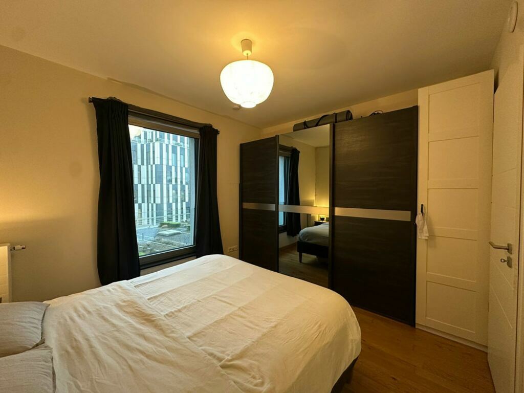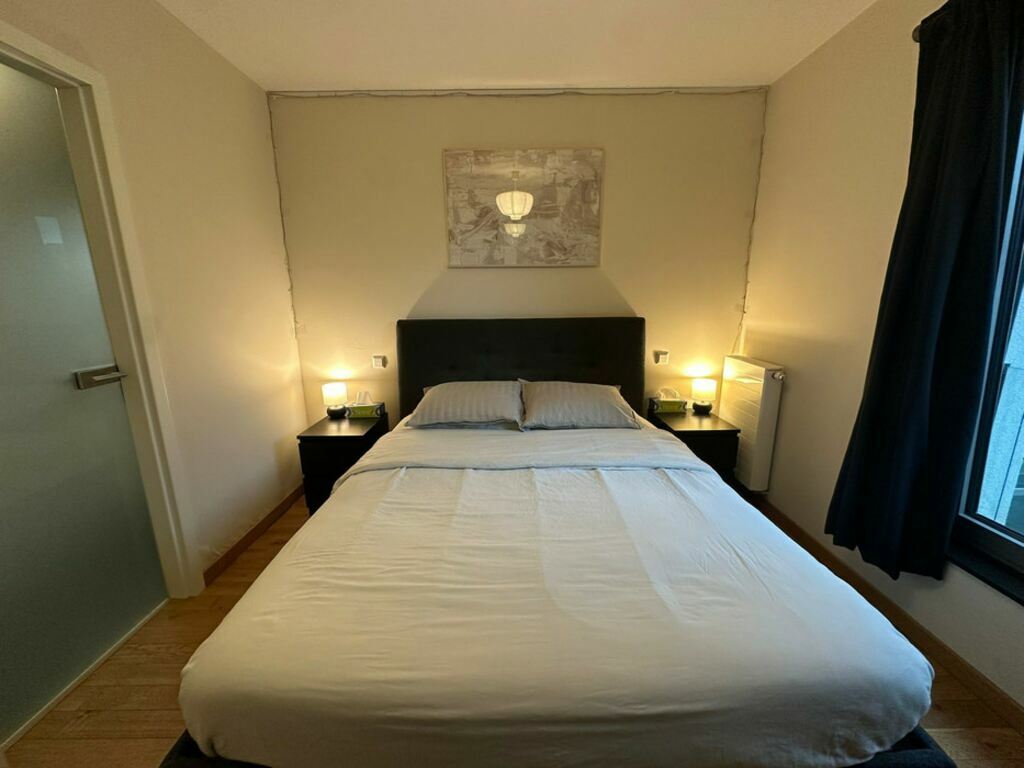 Quant à la chambre à coucher, sa superficie est de 11,80 m2 (3,8 X 3,0). Prenez surtout note que le sol est constitué de parquet authentique (et non du pseudo bois, comme c’est souvent le cas).