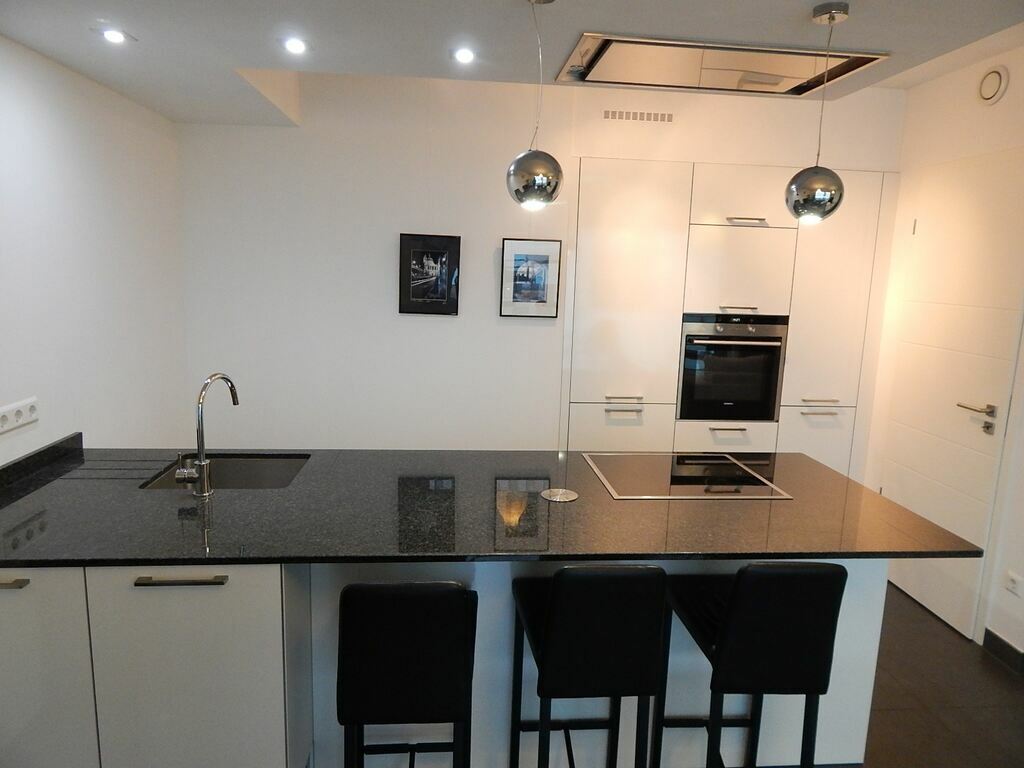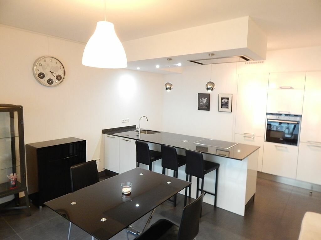 Pour ce qui est de la cuisine (ouverte au living), comme vous pouvez le voir sur les photos, elle est très bien équipée, plus que standard même. Elle comprend un réfrigérateur + un congélateur séparé (avec trois bacs), un four + micro-ondes séparé, et un lave-vaisselle. Prenez également note qu’à cela s’ajoute un îlot de cuisine comprenant une grande plaque de cuisson vitro-céramique avec sa hotte au-dessus.