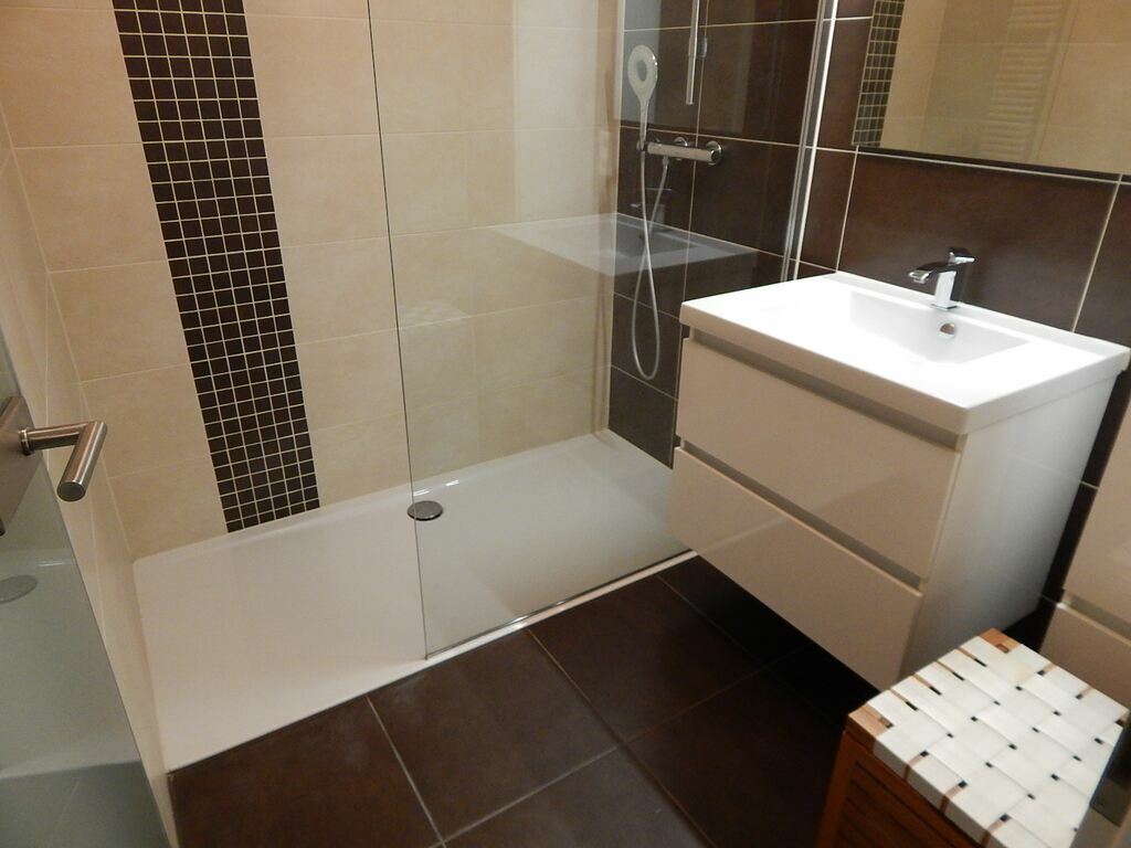 Quant à la salle de bains (intégrée dans la chambre), elle comprend une cabine-douche dit « à l’italienne » (très spacieuse ; 1,7 X 0,8) et ainsi qu’un lavabo encastré dans un très joli meuble. Le WC est quant à lui séparé (évitant ainsi à vos invités de passer dans votre sphère privée).