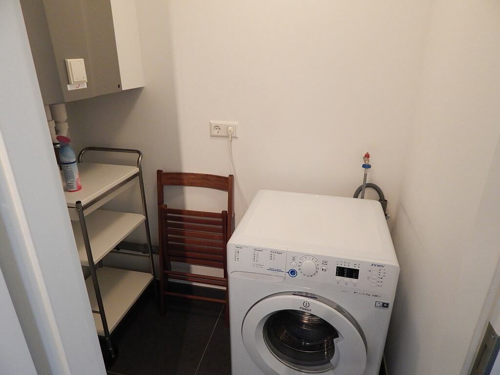 Côté pratique, sachez juste qu’à côté de la cuisine vous avez un débarras de circa 2 m2 (1,8 X 1,0), qui fait également office de buanderie (comprenant un lave-linge).