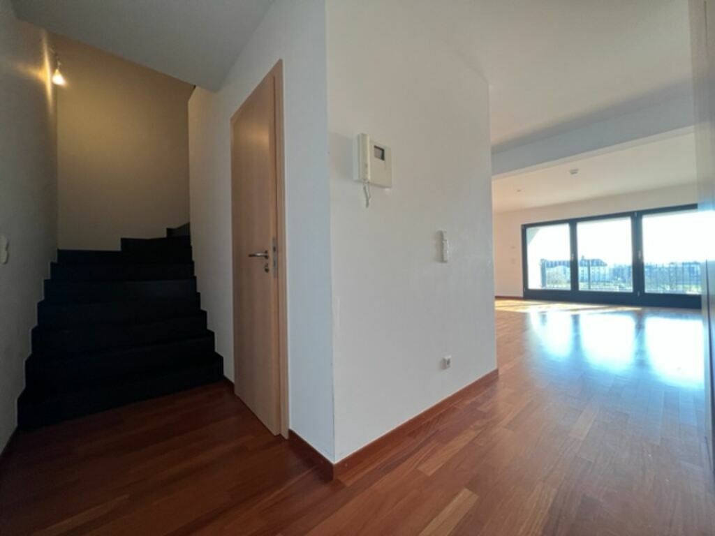 Par ailleurs, comme il se trouve tout en haut de l’immeuble, il a non seulement l’avantage d’avoir une grande luminosité, mais il a aussi une vue très dégagée. Le duplex est situé au 67 route d’Arlon de la Ville de Luxembourg (quartier Belair), pas loin de centre-ville. Le tram est à 7 minutes à pied (Place de l’Etoile).