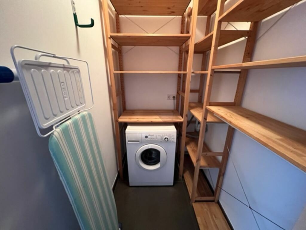 Côté pratique, sachez que vous avez également dans l’habitation même un débarras, permettant d’y installer non seulement votre lave-linge (donc le débarras fait aussi office de buanderie, vous évitant ainsi de descendre à la buanderie de l’immeuble), mais aussi votre table à repasser, l’aspirateur ou autres objets encombrants.