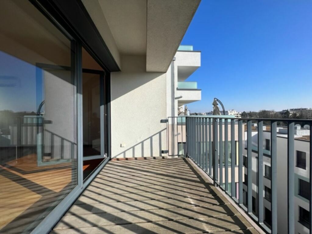 La particularité de ce joli duplex (dans un immeuble construit en 2008), c'est qu'il a un balcon de 3,5 mètres de long et 1,5 mètres de large. Ce qui veut dire que lorsqu’il fait beau, votre habitation de 105 m2 est prolongée encore par un extérieur de 5,25 m2 très ensoleillé. Prenez également note que l’exposition du balcon est idéale, car vous avez non seulement le soleil dans l’après-midi (sud), mais aussi en soirée (ouest).